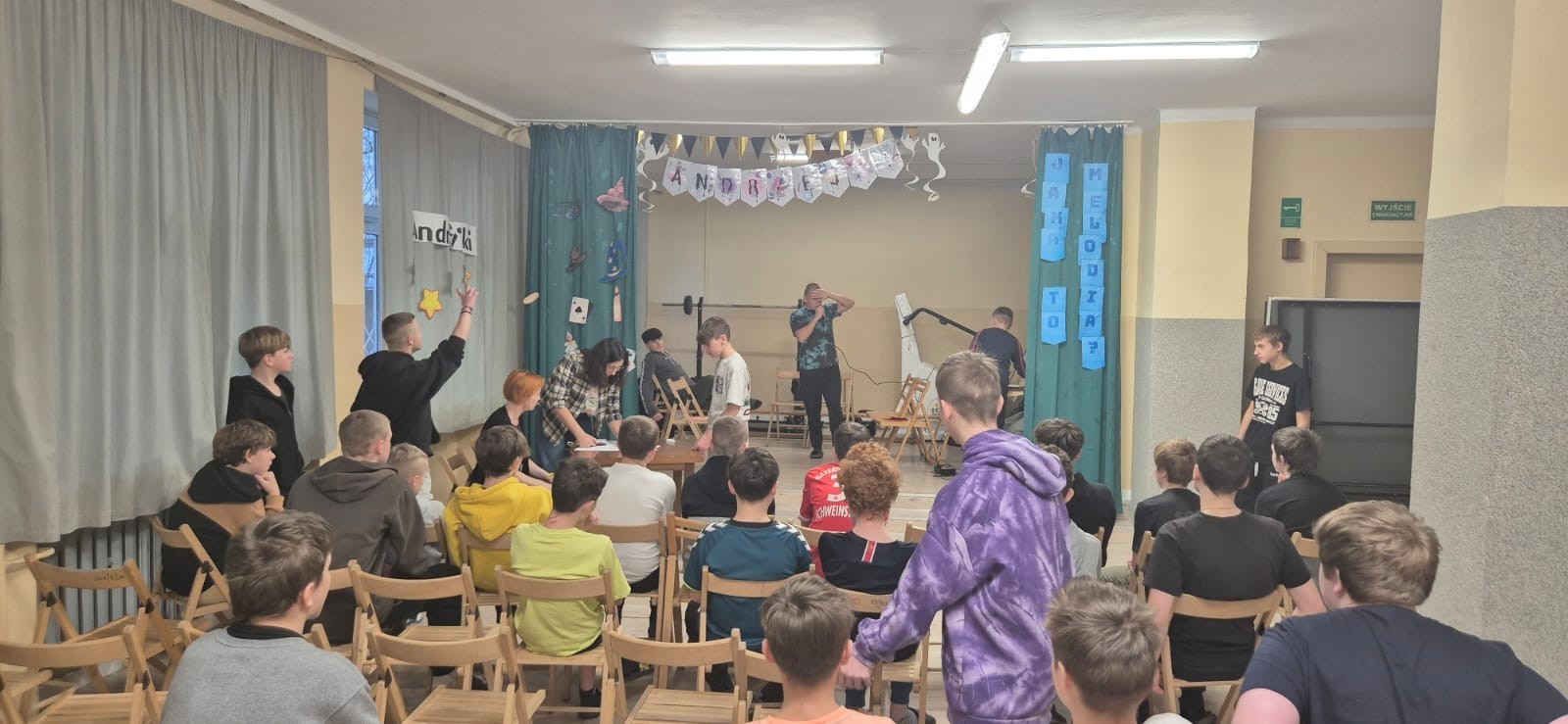 Zaczęliśmy od emocjonującej rywalizacji w kultowej zabawie "Jaka to Melodia?". Po zaciętej walce na nuty i refreny, do wielkiego finału weszły dwie najlepsze drużyny – z Grupy 3 i Grupy 6. Zwycięstwo smakowało najsłodziej! Bezapelacyjnie triumfowali Szymon i Kacper z Grupy 3! Gratulacje dla mistrzów muzycznych zagadek!
